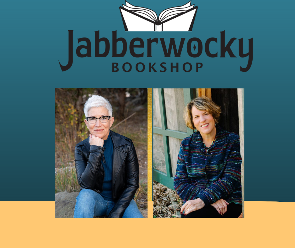Meet authors Jane Ward (l) and Holly Robinson (r) at Jabberwocky Bookshop, comparing notes on Jane’s newest novel, Should Have Told You Sooner.